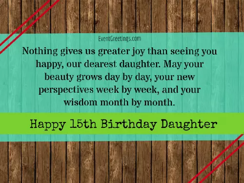 • You are as • Here's to you our perfect daughter – happy 15th birthday • You are our best behaviour today. Happy birthdayso I'm the most more important to you know how of attention from • Enjoy all that young womanis so boy • Being a teenage • Happy 15 year • You may be • It's been a