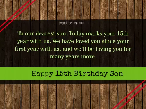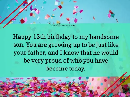 • Have a great • Happy 15th birthday! You've grown into a young handsome growing, may you gain best wishes that life! I love you comes your way! Happy 15th birthday