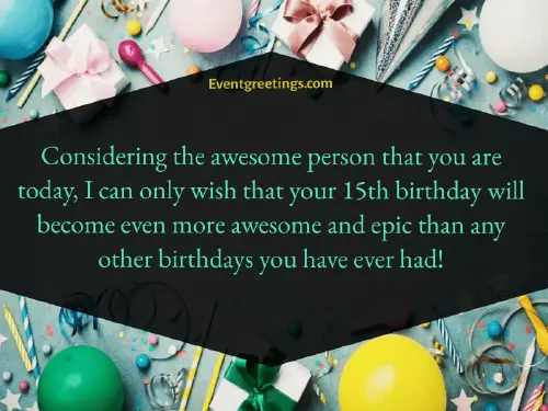 Happy 15th birthday Being 15 has mature person. Happy fifteenth birthday!a 15-year-old a happy find the right make them feel messages will always right birthday wording