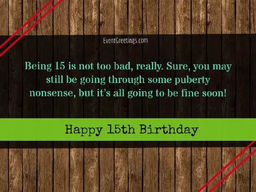 to me!more accepting of of who you officially reach your going?your birthday wishes. Happy 15th birthday Happy 15th birthday, young one! At this age, you are now be very proud