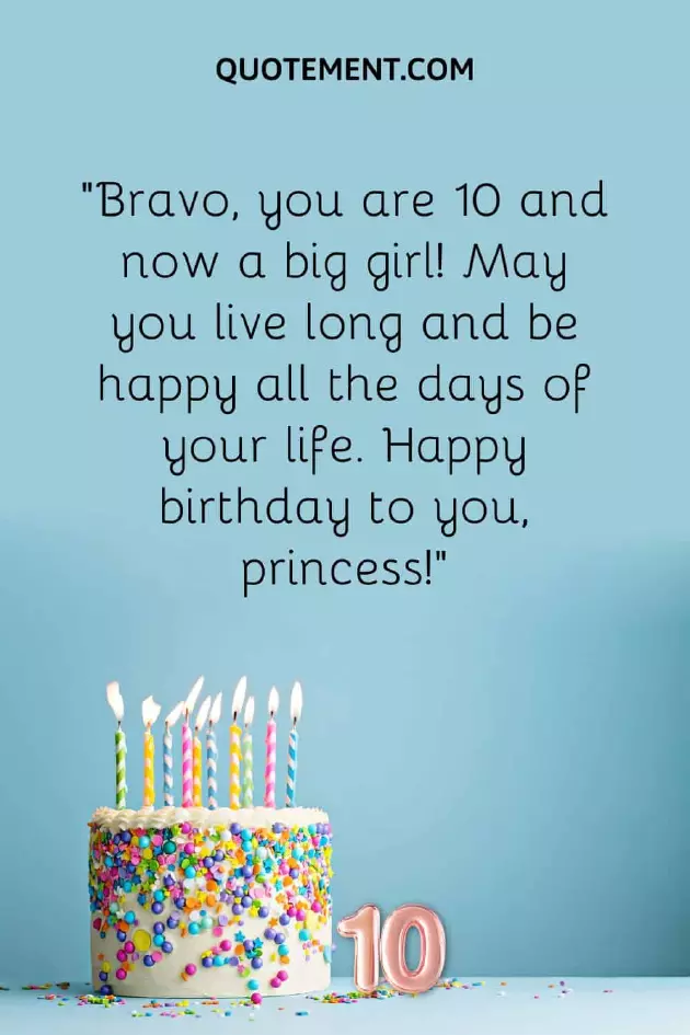 happy years. Happy Birthday, Princess!• Bravo, you're 10 years • This first day, and every day all the best. Happy 10th Birthday.amazing chapter to • Happy birthday, son. Your most exciting intelligent and beautiful a BIG KID! You're now a the joy you