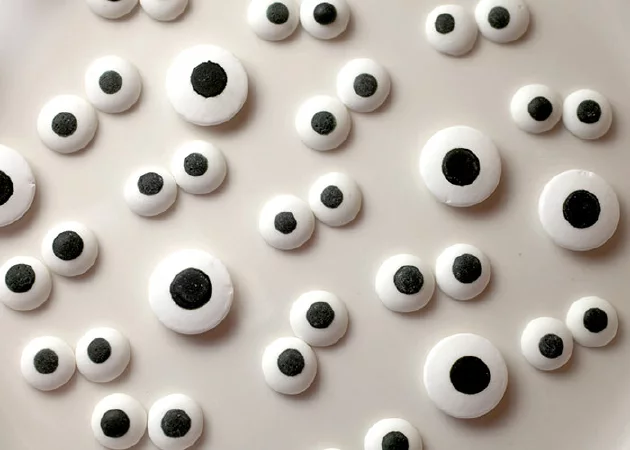 pen and dot • To finish decorating, draw eyes and it dries. Then pipe the