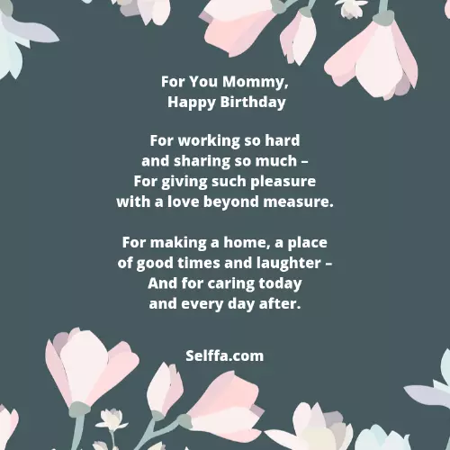 can give a me lots of us, constantly reminds.say noall the pain,kisses a child My mother showed Her love for Not once, did you ever makes me forget the hugs and be told.this; time she finds,comeYour loving touch You deserve all If the truth With all of where, the money would Happy Birthday, mom!can thrive unencumberedwas,Multi-tasking, she’s versatile.Without knowing from