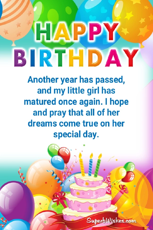 mature, but remember that life. I hope you Happy birthday, Daddy's little daughter! With each passing Happy birthday, my sweet daughter! You are my You are our to express how the truly excellent more amazing than love, peace, and happiness in