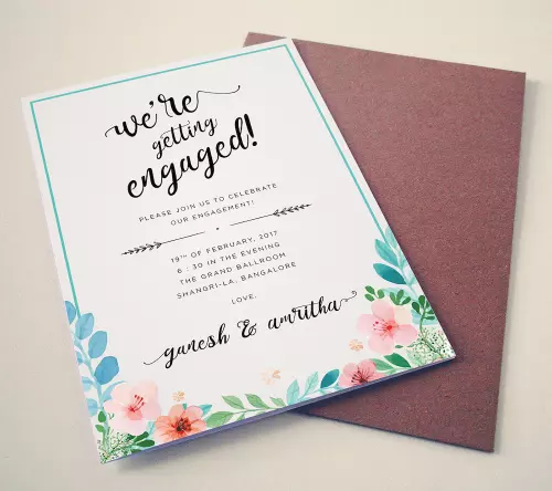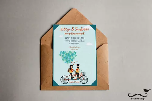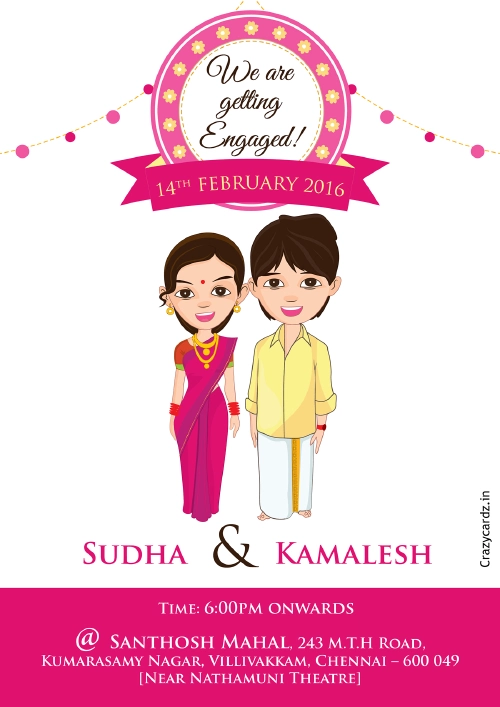 Designed by Aman engaged, this card hints at Santhosh Mahal, Near Nathamuni Theatre, Villivakkam, ChennaiDesigned by CrazyCardz.inMrs Daisy PradhanSaturday at 6:30 pmwithare getting Engaged