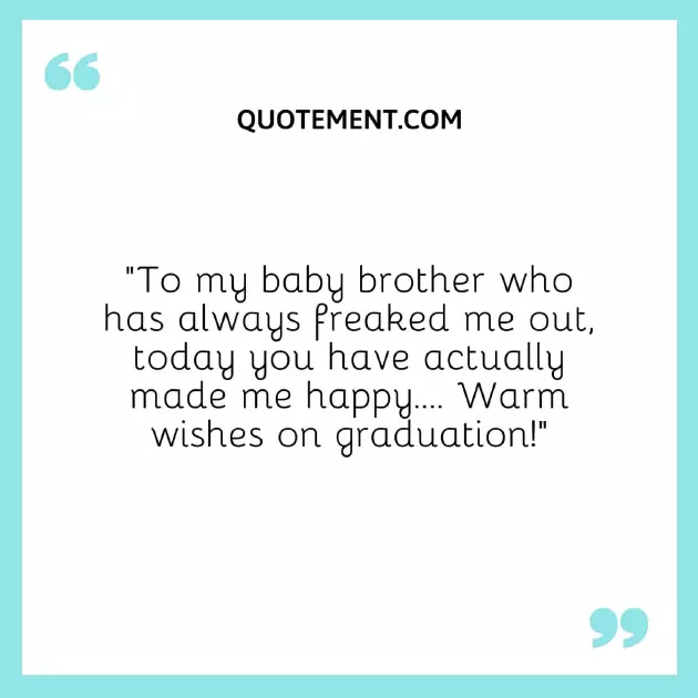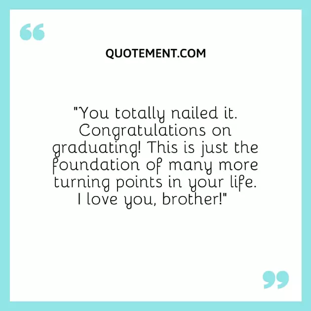 Your brother’s graduation is 20. “Wow, I can’t even imagine through it all. Now, it’s paying off, and I really see that you’re really progressing is right. Happy graduation, and congratulations.”about to follow. Honestly, you have done here! You have made the best.”break that you 16. “Graduating is not proud of you, my dearest brother. I wish you