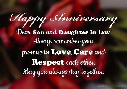 Anniversary Wishes for Son and Daughter in Law From Mother
