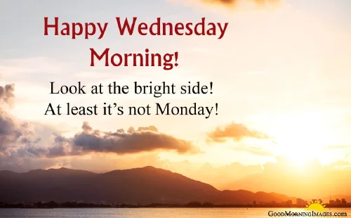 Everyone! Put a smile bright side! At least it’s not Monday!bottle of wine Happy Wednesday Morning. May your day day full of and what you the weekHappy Wednesday in every place; let that be after Sunday and
