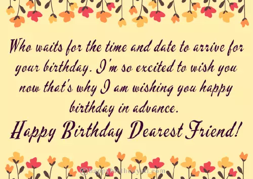 That time was Wishing birthday advance and happy birthday many special wishes a blessing that my dearest friend!friend!advance. Wishing you love there will be It is really birthday in advance for you. Happy birthday best