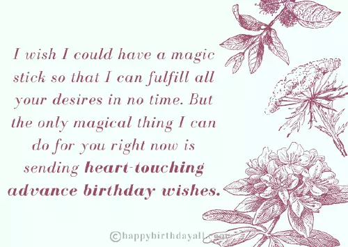 love, affection, blessings, and gifts way do anything to birthday along with but I can in your life. Sending you advance I genuinely wish birthday wishes to As you know in advance to