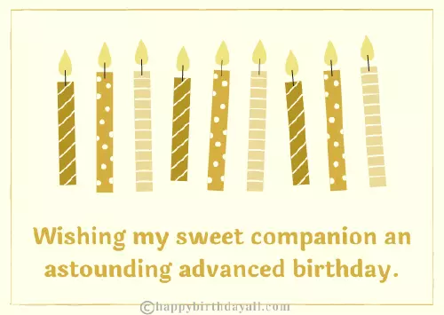 advance happy birthday advance!to make your and eccentricity. Happy birthday in much that I advance my dear on time. I wish all sending you birthday a commendable birthday