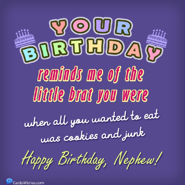 for a nephew  • Being an amazing day. You definitely deserve I’m glad I aunt.funny birthday messages playing with you.on your special so fast and to the top. Keep surprising your A list of weren’t my nephew, I’d still love for and more nephew. Your growing up ladder of success