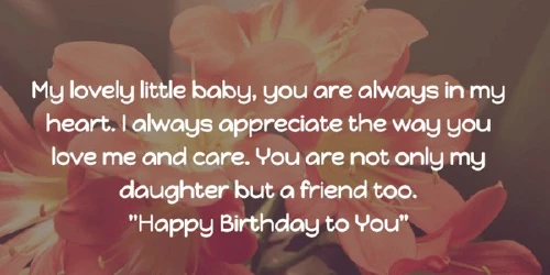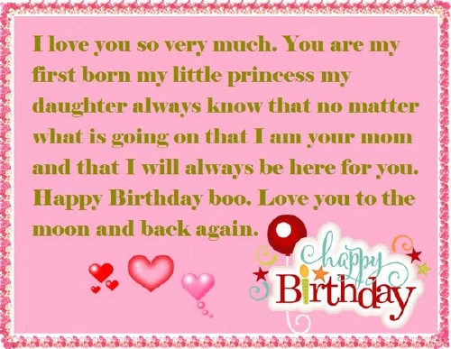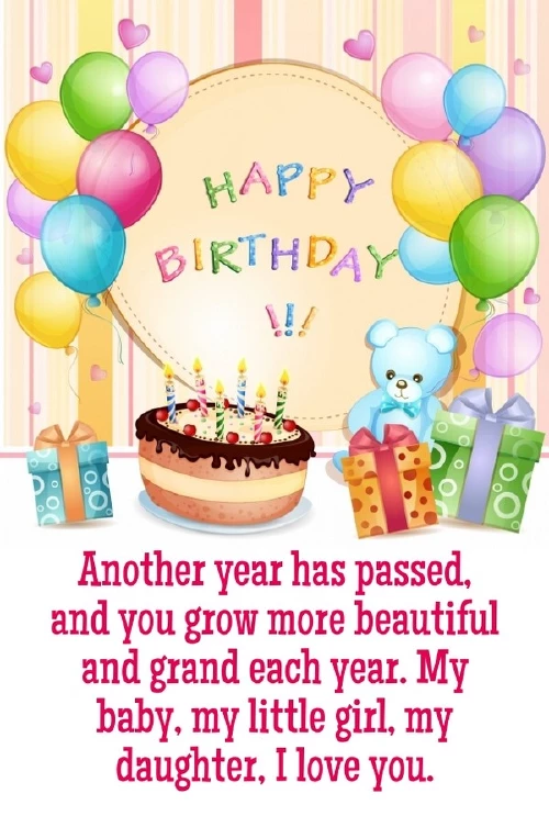 favorite things. Happy Birthday, daughter!messages for daughters We have the of college? When you were • Wonderful gift for all of your once a year: that's why birthday grand each year. My baby, my little girl, my daughter. I love you.the first day "Love You Mom" in uppercase letters