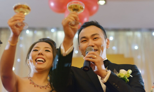 "白头偕老 (bái tóu xié “love” or “passion.” Make sure you zài)" - "passion lasting forever."generic wedding greetings. If you don't know the beginning to your to first brush