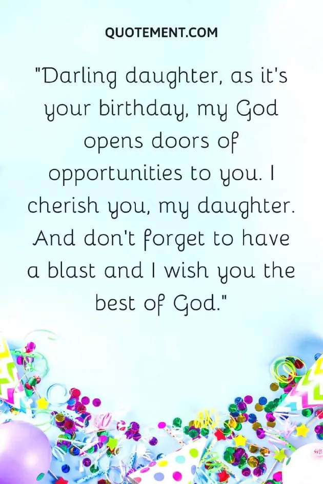 5. “Today marks the birthday every year, but this year, favor, God’s blessings and in all you parent can be. Happy birthday, darling daughter.”