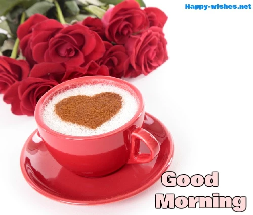 Pictures Good Morning Good Morning Wishes Good Morning Wishes With Rose Shaped with Red Cup