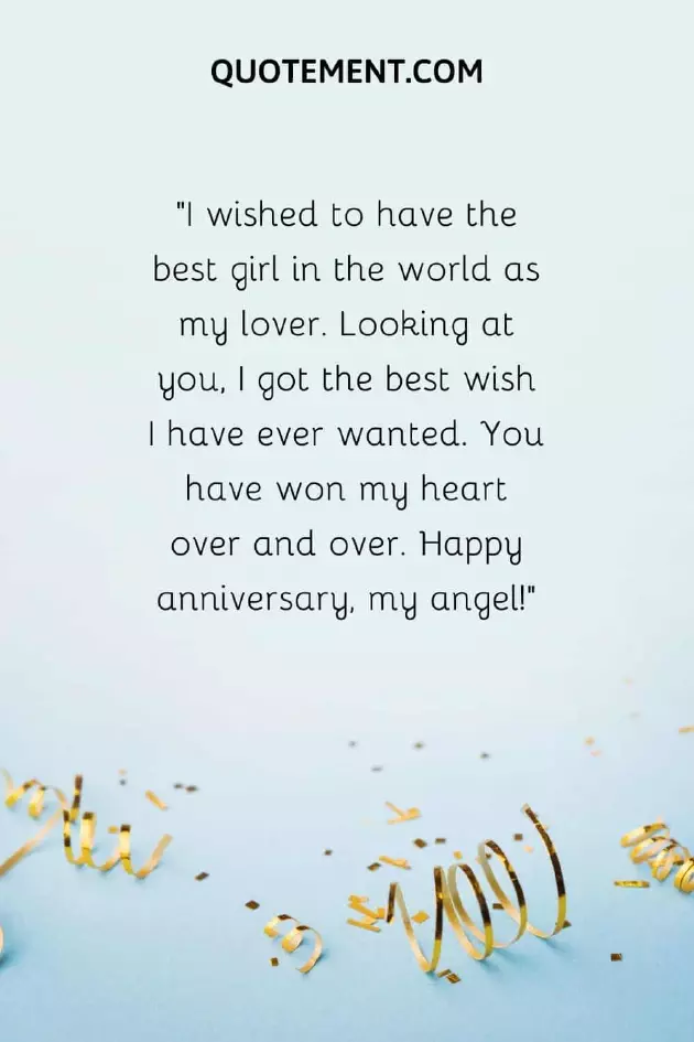6. “Our tenth month and more every my life. Happy ten-month anniversary, my angel. Thank you for transformed for good. I love all human, not an angel, because everything you of anniversary!”love you more be yours all