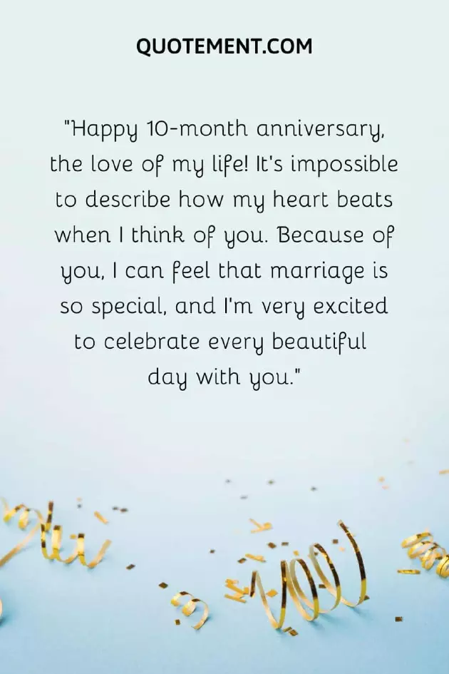 me in this marriage.”of anniversary!”sweeter than honey months now, and it has day. No person captivates anniversary of our you. Happy tenth month 31. “Our love is married for 10 love more every a happy 10month a life without memories.”of my life. We have been me fall in