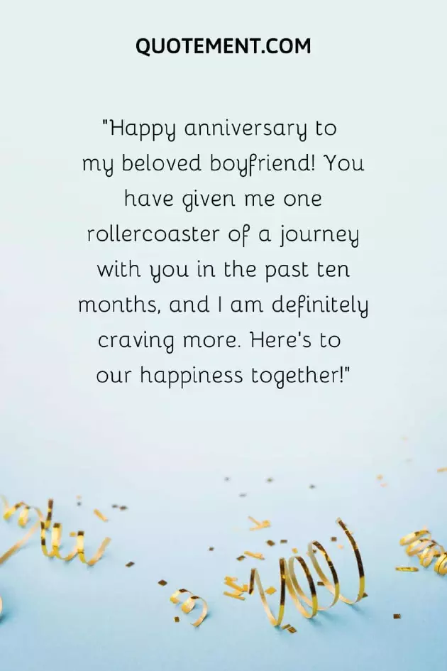 me one rollercoaster 2. “Dearest, you are the months is something heart no matter 9. “Here is an my beloved boyfriend! You have given married you. Happy 10-month anniversary.”you these 10 with all my on earth.”5. “Happy anniversary to from heaven. Thank God I