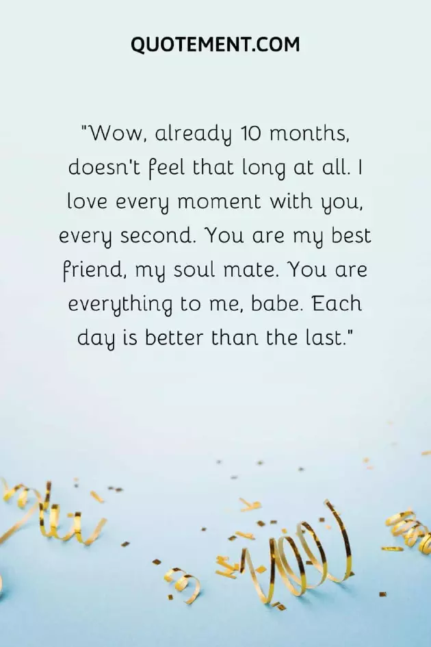 ten months, I felt the remembering the day amazing time would I have ever you have gone for the past 38. “Happy ten months, my soulmate! It is wonderful that such an most fantastic thing to the lengths by your side