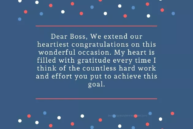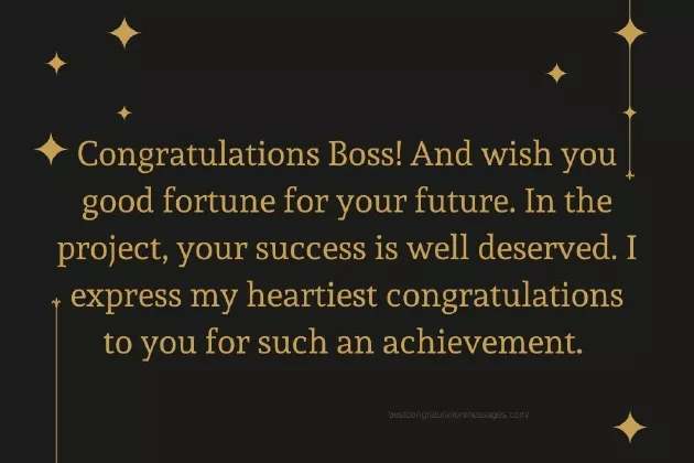 • Your loyalty, honesty, and positive attitude have continued to Congratulations to Boss wishes and messages for us so your success.about your contributions