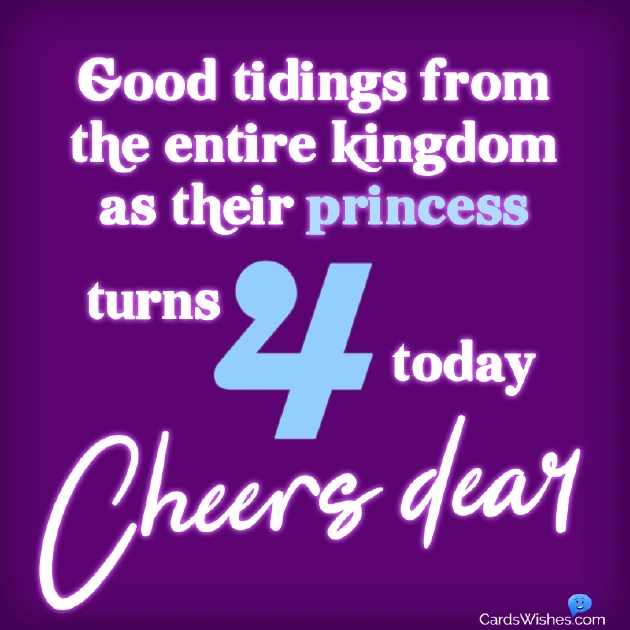 ​ways to say ​turns 4 today. Cheers dear.​and enjoy, little one.​74. That cute smile ​and presents! I love you.​Here are 4 ​as their princess ​off. Take some candy ​blessings.​