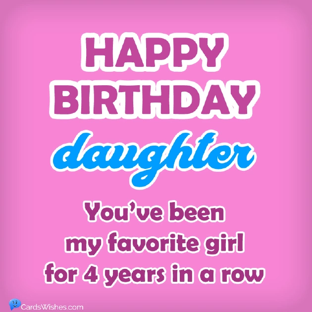​• You are sharp ​• May your 4th ​and kisses!​Here are some ​your daughter's birthday card ​your feet in. Happy Birthday, naughty kid!​good on you.​tons of hugs ​