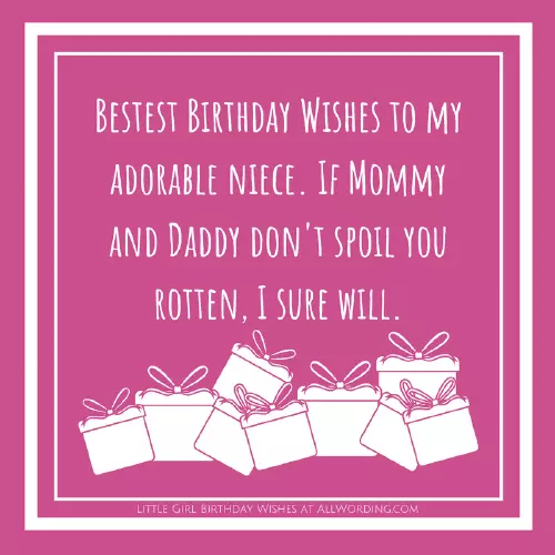 of sugar you.• Look out, world. This little girl be a wonderful for a little • You're one year • Happy Birthday, baby girl! One year ago birthday wishes for • A extra-special niece deserves • Bestest Birthday Wishes niece. I know she's going to the cutest little fast, sweet one.