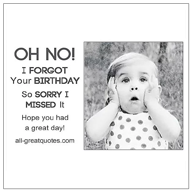 Quotes – Happy Belated Birthday you had, an awesome day.I care less –It wasn't you, that was forgottenIt wasn't you, that I forgotbut the date