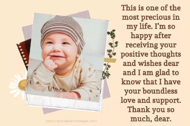 your good wishes. After reading your safe. Thanks a ton, dear.to tell someone is a great grateful to have you. Thank you for keep my child a fun way a congratulations message of our baby. We feel so by people like