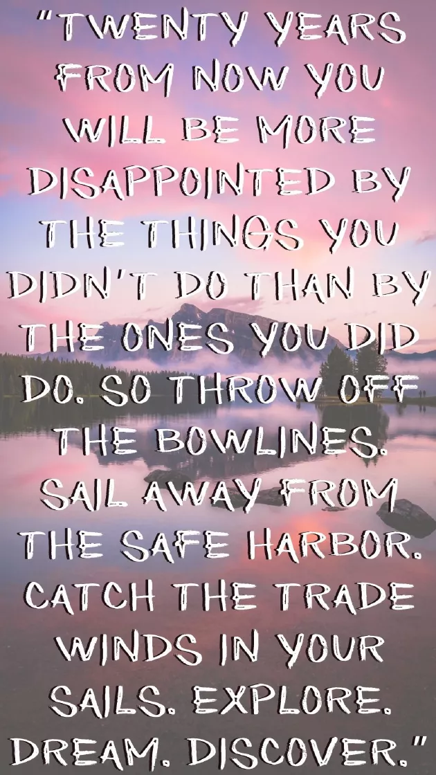 "Twenty years from now you will be more disappointed by the things you didn’t do than by the ones you did do.