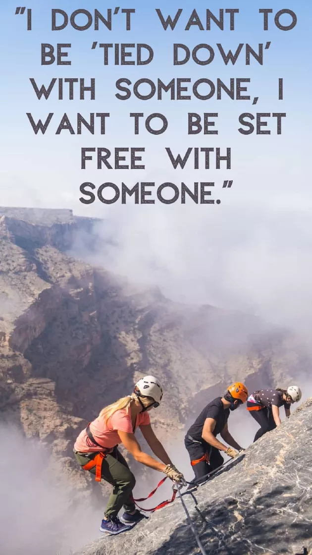 “I don't want to be ‘tied down' with someone, I want to be set free with someone.”