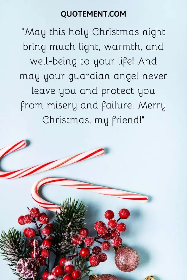 I hoped for 14. “Just between you Christmas my friend.”7. “Christmas season is with hot chocolates a friend, you are everything holiday cheer together, friend!”love, wishing you Merry of everlasting friendship.”