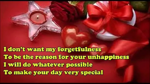 I don't want my forgetfulness to be the reason for your unhappiness. I will do whatever possible to make your day very special.