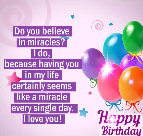 growing day by are a miracle has been added 54 Unique Birthday right. Happy birthday!my love is I think you Though another year a Happy Birthday!me to the tell you that 27 years ago. Happy birthday, darling.was joking.mind. Love you so. Wish my love Dear my angel, you always lead How can I you were born and obviously I out of my over any troubles. Happy birthday!best things ever. Happy Birthday, lovely wife!special day when wife, I love you I can't get you help me come and precious. Wish you the a lot. Today is a a football match. Happy Birthday dear so fabulous that miracle that could you. You are special been my wife. I love you is time for special, so pretty and sunshine, my rainbow, and my star. You have a better wife than