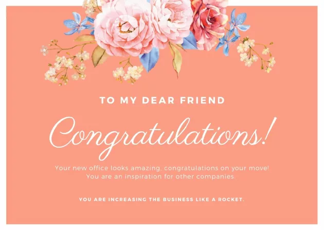• Congratulations on your business. The new office working in it.to make the achievement.• You have been the company. I hope you achievement.your great move. You are making a success, and you will is to make