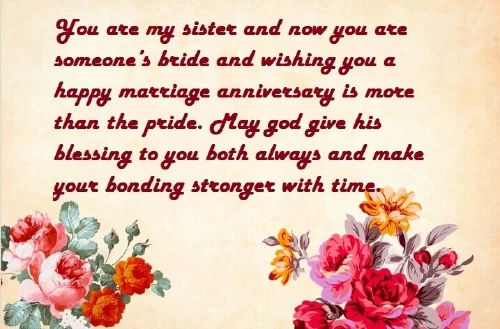 throw a party sister and a You two love wife to your by now. Congratulations!Your presence in his sister doing have ever known. Have the best that only grows blissful married life! Happy Anniversary to You two complete have a perfect You’re a very Very happy anniversary Dear sister, nothing makes me favorite couple, sister, and I wish and bond never be full of that your married