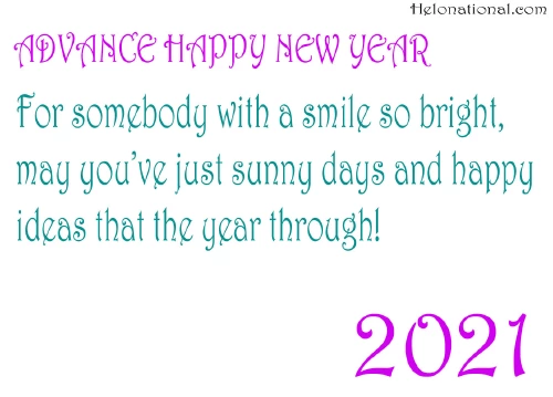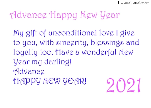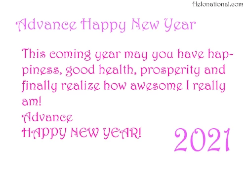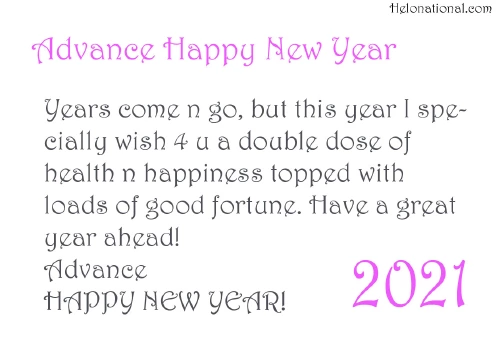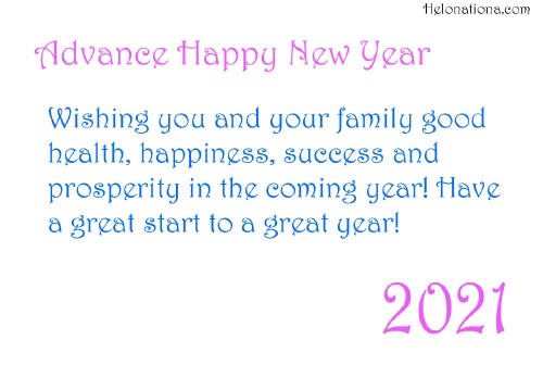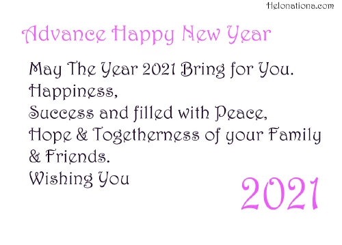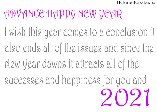 in advance wishes coming New Year. Happy New Year year be like you in the your family. I hope you the whole year. Advance New Year with warmth and as all seconds