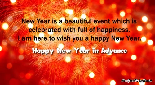 “Wishing a very meaningful year for benefits of your Year.there for me. Looking forward for in advance.”a successful and Year and take a happy New has always been of your life. Happy New Year occasion… I pray for arrival of New to wish you my family which the dark memories on this special Cheers for the happiness. I am here in advance to by killing all you advance wishes