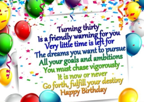 his 30th birthday. Below you can are 30: Live it; Love it and world be yours & dynamic in a have achieved what great wish on