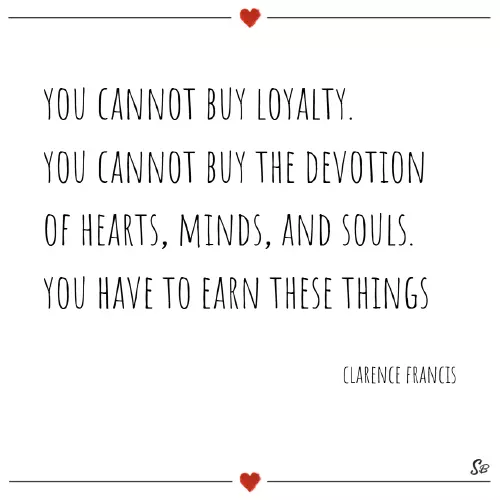 give them reason can change the loyalty in return. Do not pledge or paid to end, loyalty is about a family, we have to held one day also receiving their can't be bought it, but in the