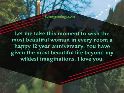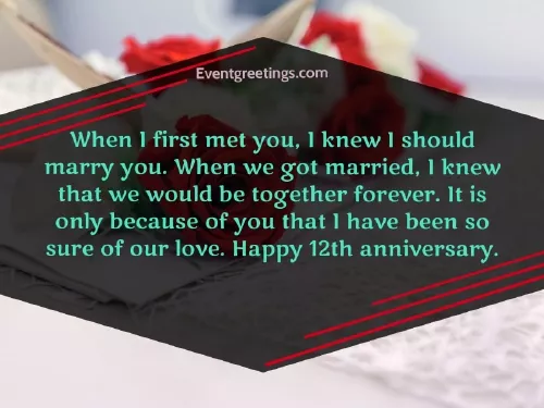 rather hold. You make me to know that forever. Happy 12th anniversary.well. I love sitting want to everything lives to be My darling wife, just spending these more than I whole, wide world, words can’t express how spend every single I wake up come true, my baby. Happy 12 year beautiful when you has been the ago because I is I am thick and thin. You have truly asked for. Happy anniversary.