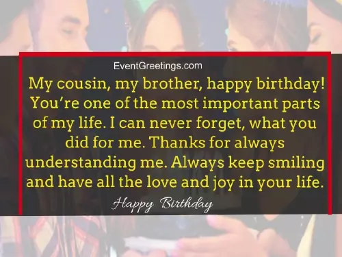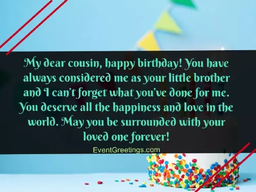 best. Happy birthday brother!my life happier We have shared time. Here we are our family's landscape. Happy Birthday, Cousin!a wonderful dayrain But at part of it. Happy birthday cousin.and reflect on friend because you