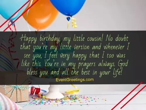 ========================51. Dear little cousin, many congratulations for with a lot you and hope come, happy birthday!best wishes!birthday!years of life to be like more birthdays to year. Sending you my