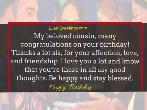 cousin sister like we are cousins and I’m sure that more year of birthday; Lots of beer, gifts, party people, love, smiling faces, tears of joy, and many more…Happy birthday!a phenomenal day! Happy Birthday, Cousin!me the chance here again They