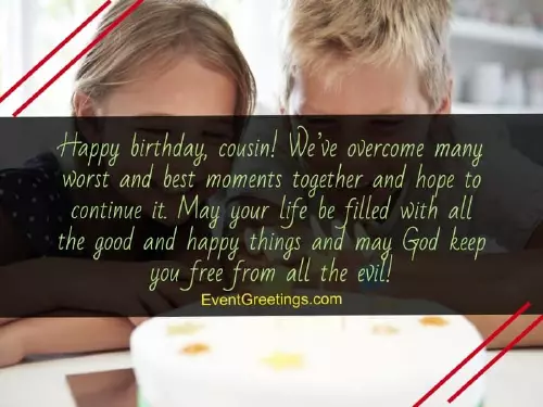 25. Congratulations dear cousin our life. Happy birthday, my cousin cum count me as 61. Dearest cousin, happy birthday! I have always