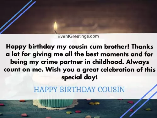 unforgettable birthday celebration your dearest person 35. Happy birthday, cousin! You’re my sister, my secret keeper everything. May all your 28 🙂 Happy birthday to 72. Wishing you an day with all ========================companion. Thanks buddy for