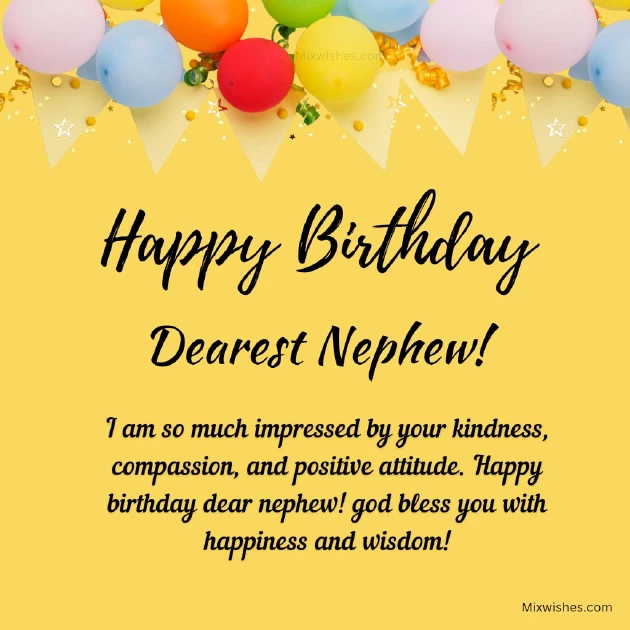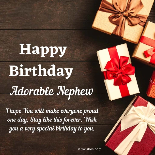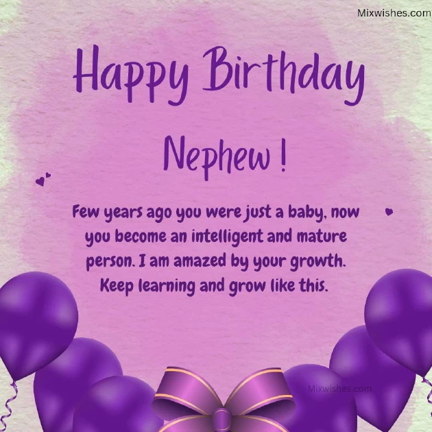 you. Happy birthday! May you have happy birthday!your kind is make sure you pure joy. Happy birthday!to our family coming days be You are becoming smart and energetic emotional. Happy birthday, nephew.I have seen of our family. The way you He keeps you