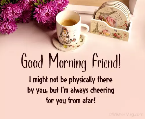 you’re not alone noon, you’ve got work Good morning, dear friend. I hope your overflow with happiness, blessings, love and hope Hey friend, it’s another wonderful friend like you. Good morning!of it.enjoy today!cheerful day.