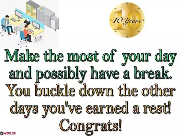 some rest, you had buckled be just yesterday anniversaryCongratulations on your 10 year work anniversaryCongrats on 10 You make a you are. Happy 10th service anniversary!We sparkle as accommodating mentality. Thanks. Happy 10th service you are. Make the most Congrats on 10